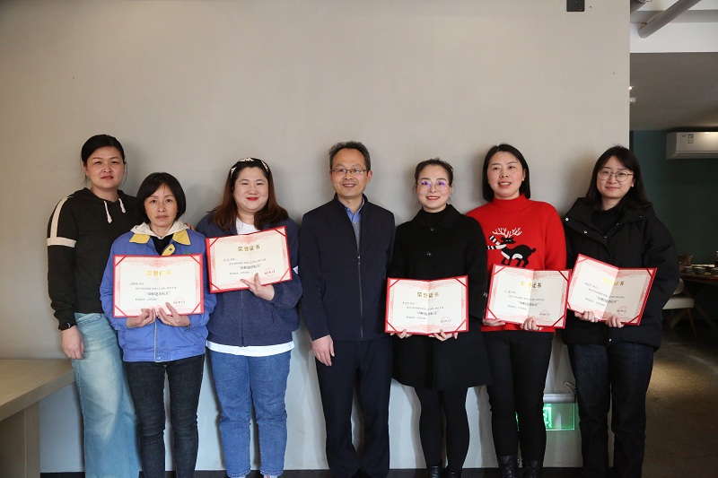 集团公司工会副主席尹云省,工会委员张瑜为集团2022年度“巾帼文明岗”、“文明家庭”、“巾帼建工标兵”获奖者颁奖。